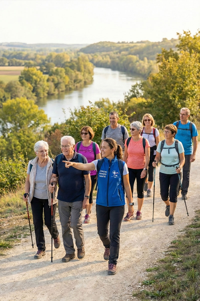 Au sein de Jonzac Rando, la section Rando Santé occupe désormais une place centrale. Bien plus qu’une simple marche, elle constitue un groupe dédié à ceux qui souhaitent concilier activité physique et bien-être, en complément de nos randonnées classiques.